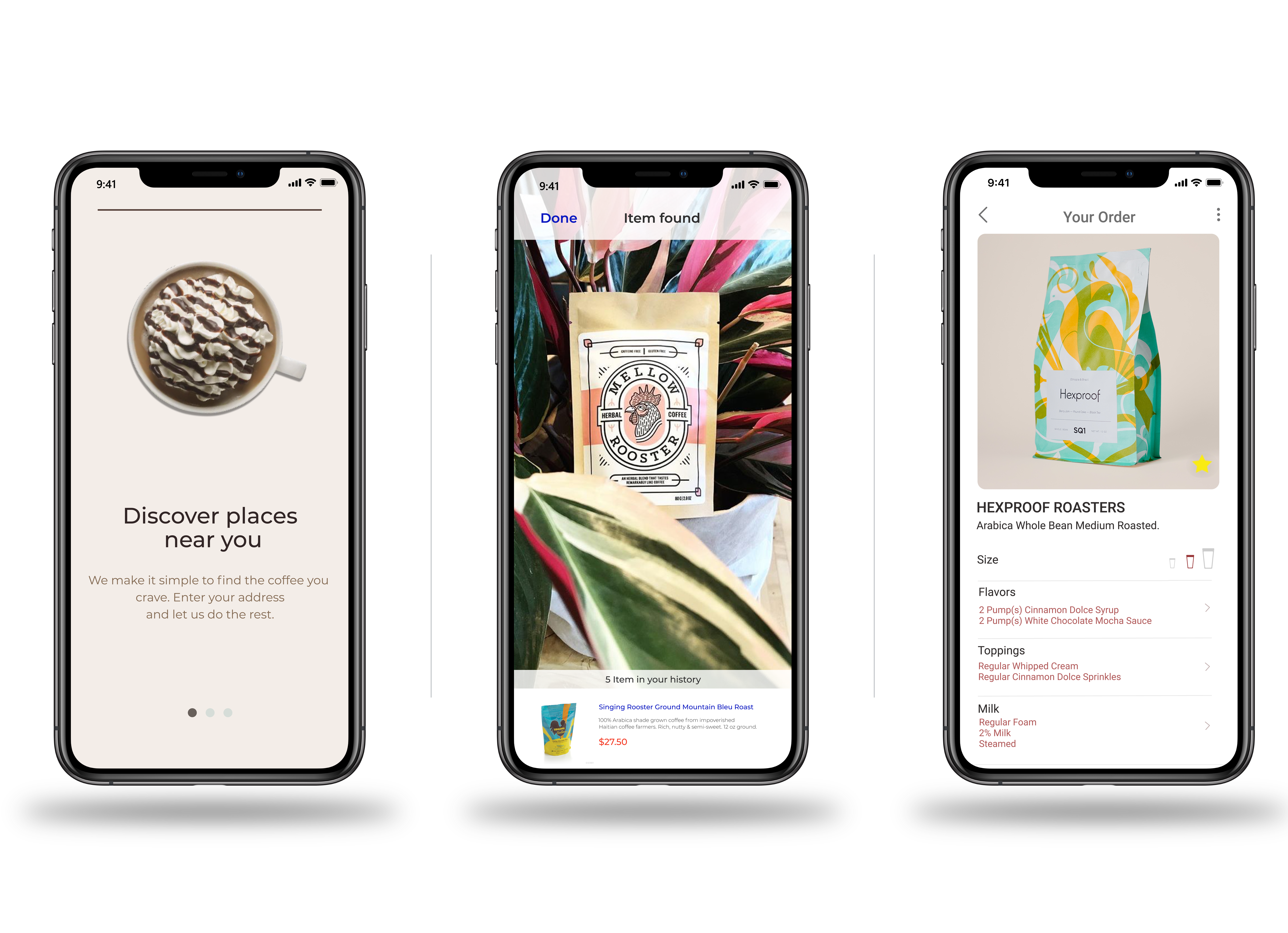 My task was to design the end-to-end experience of purchasing coffee and the coffee scanning feature.